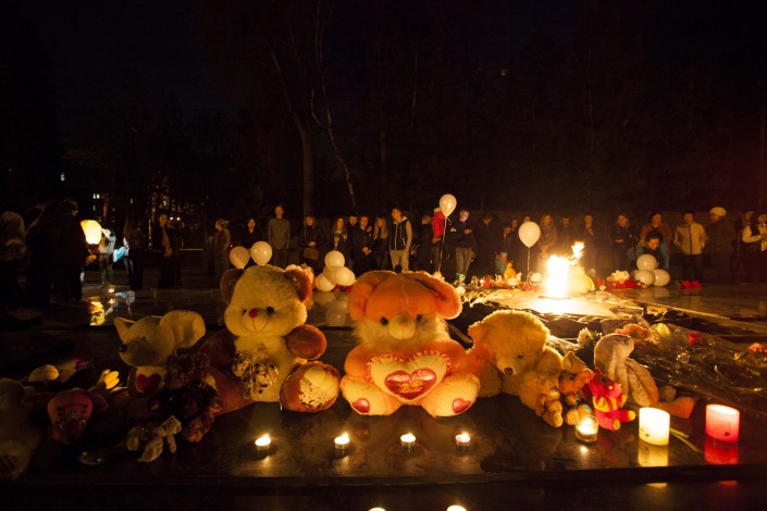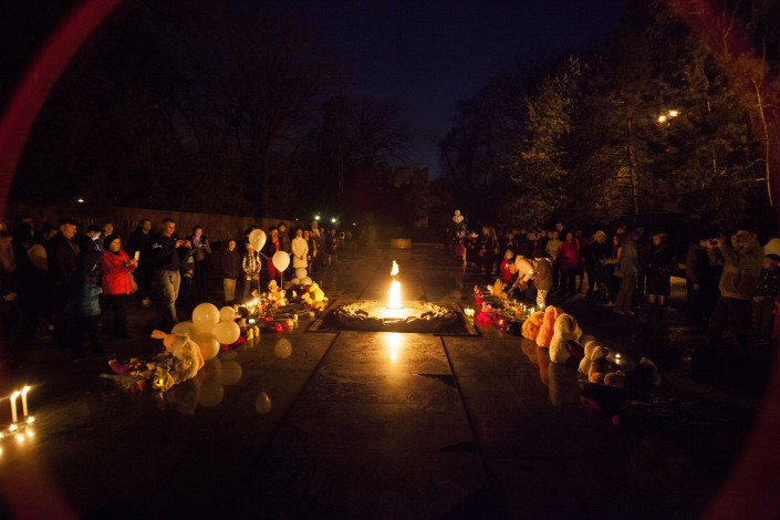 Горожане возложили цветы, принесли игрушки и запустили белые шары в парке 28 панфиловцев. В мероприятии приняли участие около 50 человек, в основном молодежь.