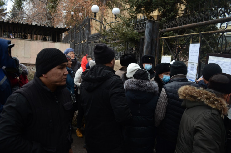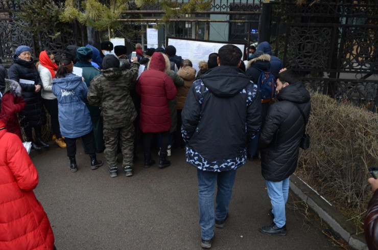 Корреспондент Tengrinews.kz находится на месте событий. На данный момент возле здания дежурят полицейские. Сообщается, что написавшие заявления горожане передают бумагу в агентство и уходят. Однако новые люди продолжают прибывать к зданию и тоже пишут заявления.