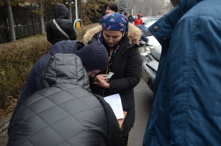 Здесь ходим с обеда, заявление уже написала. Ответ, по их словам, в течение 15 дней нам отправят. Говорят, что по месту жительства через свой банк будут отправлять", - рассказала одна из пришедших к зданию агентства женщина по имени Карлыгаш.