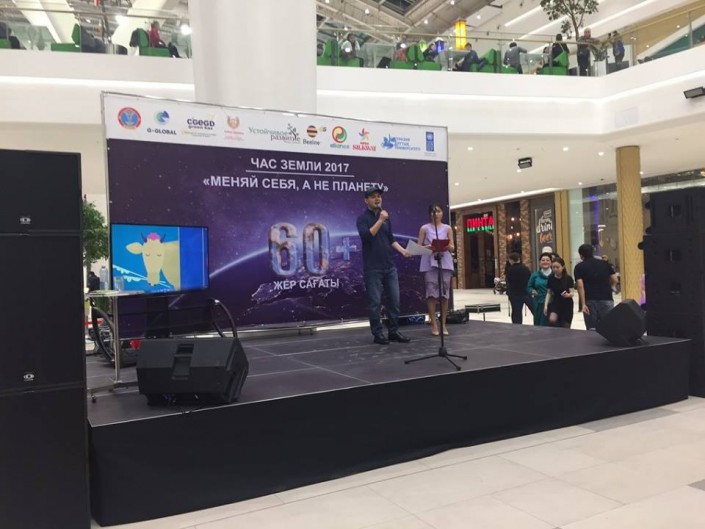 Тем временем в Астане погасла подсветка самых известных зданий, в числе которых "Байтерек", Триумфальная арка и даже резиденция Президента. По данным UNDP Kazakhstan, ПРООН поддержала акцию, прошедшую и в MEGA Silk Way под названием "Час земли 2017 "Меняй себя, а не планету. Таким образом, Астана уже в девятый раз поддержала международную экологическую акцию "Час Земли". По данным "Хабар 24", сотни гостей и жителей столицы в унисон отсчитывали секунды до старта акции в одном из торгово-развлекательных центров, где не только отключили подсветку здания на 60 минут, но и значительно убавили внутреннее освещение.