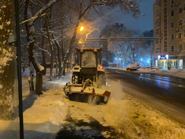 Для обеспечения безопасности участников дорожного движения работники с помощью специальной техники обрабатывали дороги противогололедными материалами. В это же время по городу двигались 18 колонн, которые сгребали снег. В результате было вывезено 1260 кубометров снега.