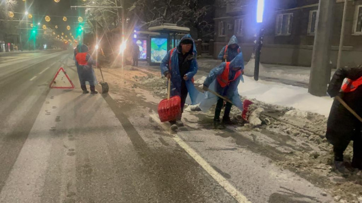 Всего ночью на улицах города работали 360 человек и 460 единиц специальной техники, в том числе 204 подметально-уборочные машины.