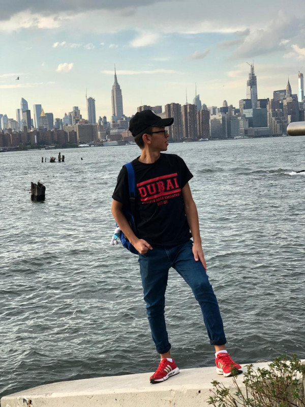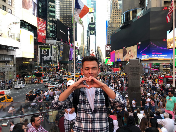 Дастан Барлыбай на Таймс-сквер в Нью-Йорке.