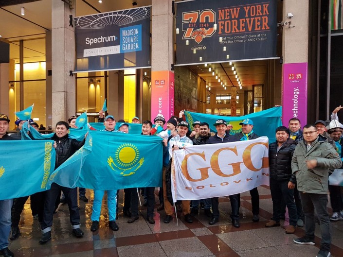 На поединке Головкин - Джейкобс присутствовали болельщики из Шымкента, которые специально прибыли в Нью-Йорк из самого южного города Казахстана.