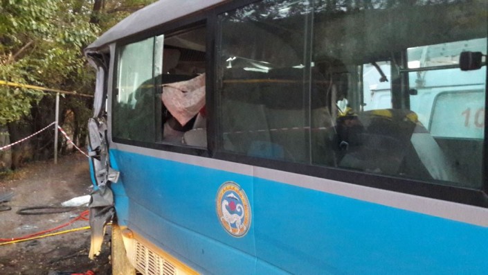 Как сообщается, ДТП произошло по улице Вокзальной. Автобус 104-го маршрута следовал в южном направлении. Со слов очевидцев, автобус маршрута № 104 выехал на встречную полосу и совершил лобовое столкновение с грузовой автомашиной МАЗ.