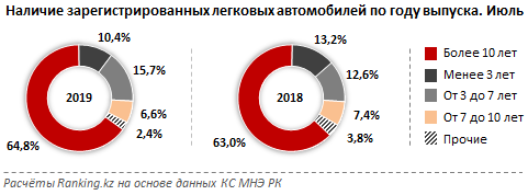 Аналитики портала Ranking.kz выяснили, что автопарк страны стареет: 65 процентов авто в Казахстане старше 10 лет, передает Tengrinews.kz.