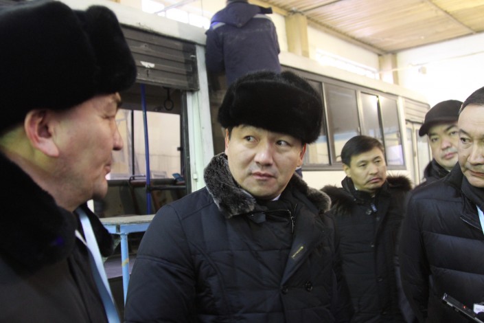 "В автобусе с госномером 789 NA отсутствует один терминал, дырка в потолке. Это Алматы! Дырка в потолке! Я бы на вашем месте закрыл бы такой бизнес и не позорил бы людей. 65-й маршрут - сломаны поручни, обшивка потолка в плохом состоянии. Покрытие пола порвано, отсутствует плафон освещения. Вы посмотрите, что это такое?! Вас в область нельзя пускать, не то что в город. Вы еще хотите от города чего-то. Сперва надо свои (средства - прим. авт.) вкладывать. Вы как учредитель, Вы даже не владеете информацией, сколько у Вас автобусов, стоите киваете. Все автобусы дымят", - возмутился аким.
