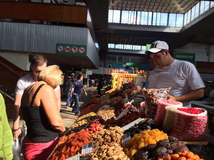 Бауыржан Байбек прошелся по рядам Зеленого базара и поинтересовался стоимостью продовольственных товаров. Продавцы заверили его, что, несмотря на изменение курса тенге, цены на продукты не повышали. Более того, некоторые из них говорили, что готовы даже торговаться.