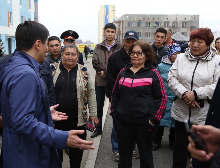 Осматривая новые объекты, Бауыржан Байбек внепланово решил поговорить с жильцами уже сданных в эксплуатацию домов в микрорайоне Акбулак, лично выслушав и взяв на контроль их обращения.