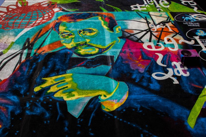Этот мурал виден практически со всех сторон. Примечательно то, что Шеге в последние годы жил недалеко от этого здания.