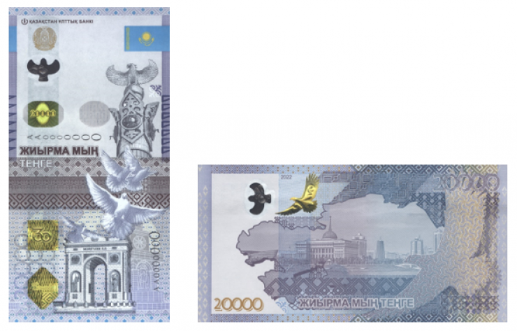 "Банкнота номиналом 20 000 тенге с новым дизайном обязательна к приему по нарицательной стоимости на всей территории Республики Казахстан по всем видам платежей, а также для зачисления на банковские счета и для перевода, размена и обмена во всех банках страны. Все ранее выпущенные банкноты номиналом 20 тысяч тенге (2015 и 2021 года выпуска) остаются в обращении наряду с банкнотами нового дизайна", - говорится в сообщении Национального банка.