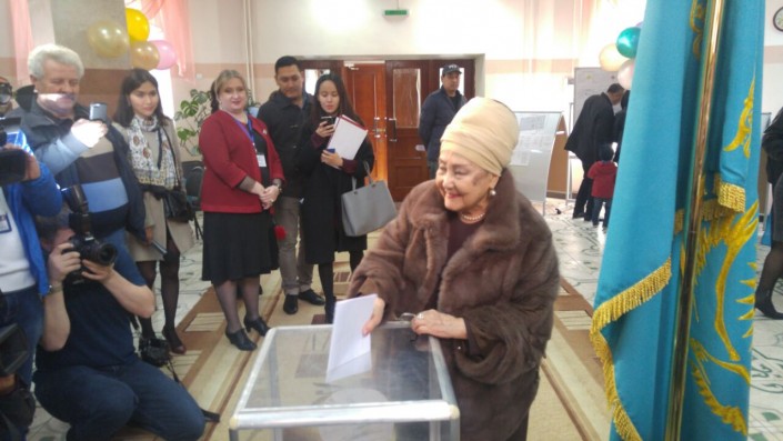 Бибигуль Тулегенова проголосовала на выборах под свои песни