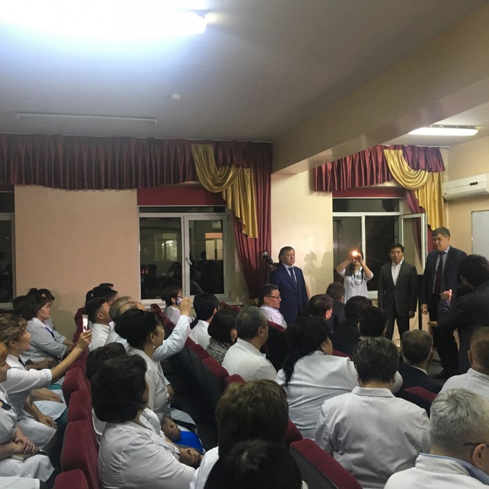 "Сегодня вечером министр здравоохранения РК Елжан Биртанов посетил с рабочим визитом Талгарскую районную больницу, чтобы оценить ситуацию с менингококковой инфекцией на месте. В ходе визита министр ознакомился с уровнем организации медицинской помощи, в том числе экстренной, и обсудил с медработниками больницы профилактические и противоэпидемические мероприятия, связанные с менингитом", - сообщили в акимате Талгара.