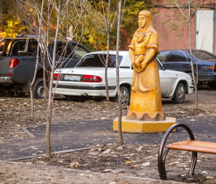 Жители домов №59 по улице Жибек жолы, №48 по улице Алимжанова и №48 и №46 по улице Валиханова получили новые футбольные поля, баскетбольные площадки, детские игровые комплексы. Кроме того, дворы были благоустроены урнами и лавками, высажены молодые деревья. В одном из дворов установлена фигура "Женщина с ребенком", символизирующая жизнь, рождение и созидание.