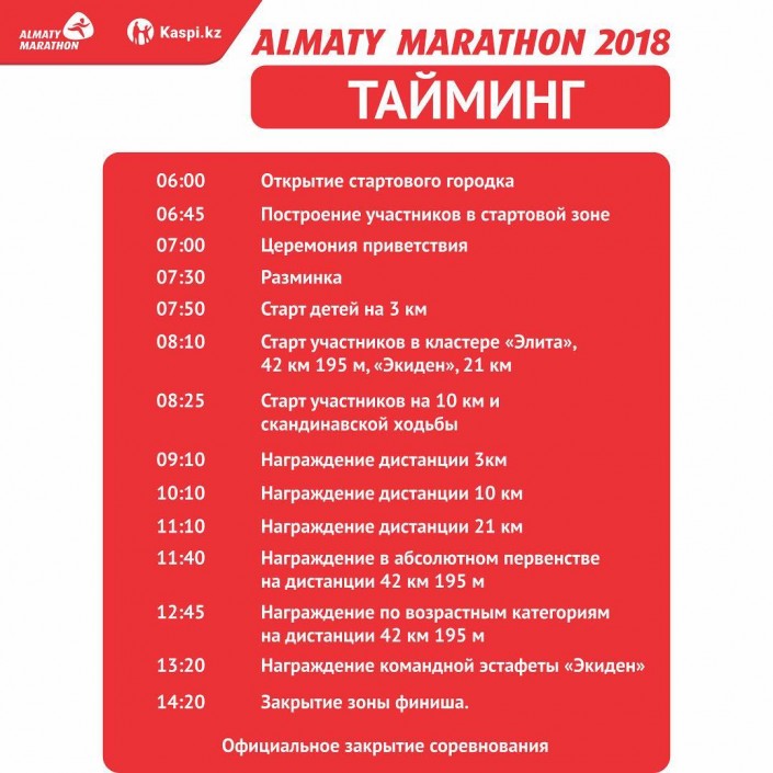 10.48 Главное - не победа, а участие. И селфи надо скинуть обязательно. Хэштэги #алматымарафон и #almatymarathon2018.