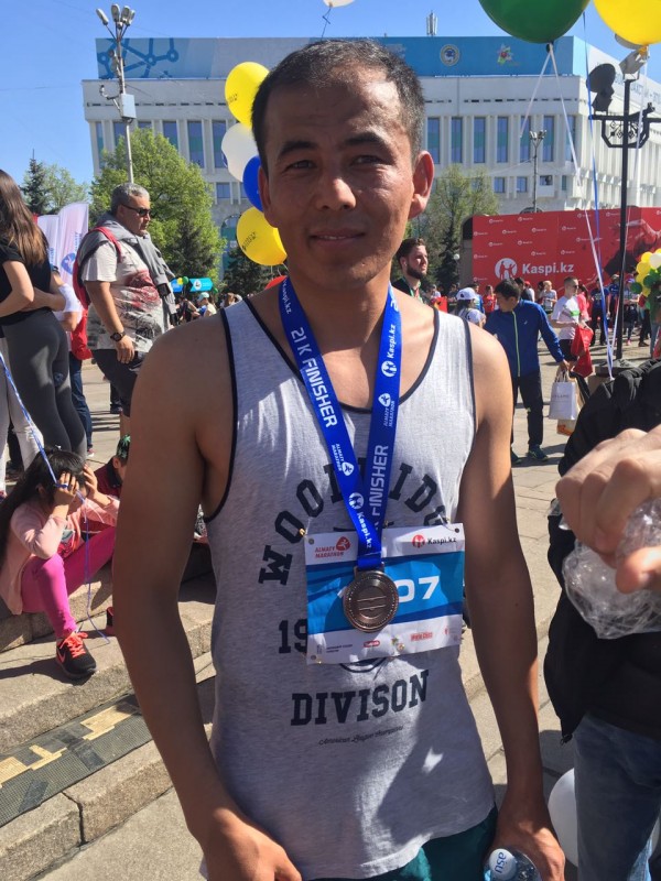10.07 Гость из Афганистана Замир Замирудинов. Уже второй раз приехал в Казахстан для участия в "Алматы Марафоне". Пробежал 21 километр.