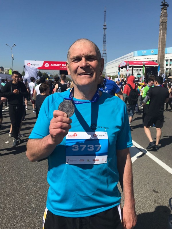 10.55 "Алматы Марафон" - одна из лучших ежегодных традиций", - говорят его участники. Петру Александровичу Осипову 60 лет. Это его 12-я медаль.