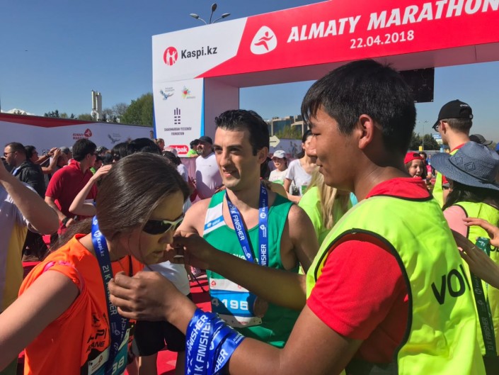 11.32 Медаль "Алматы Марафона" - ценный трофей для любого спортсмена. И получить ее не так-то просто. Так подумал один из участников. Хотя на самом деле организаторы раздают эти медали на финише всем бегунам.