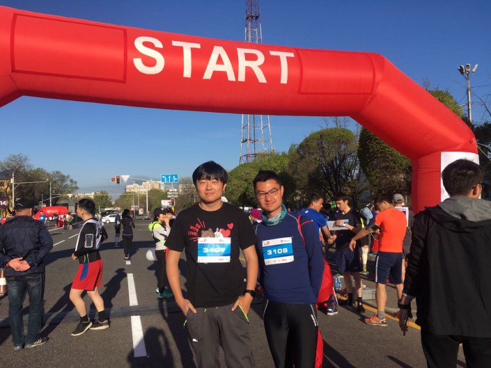 07.40 Ху Джун и Сунь Ин Рю приехали из Шанхая. Они будут бежать на дистанции 21 километр.