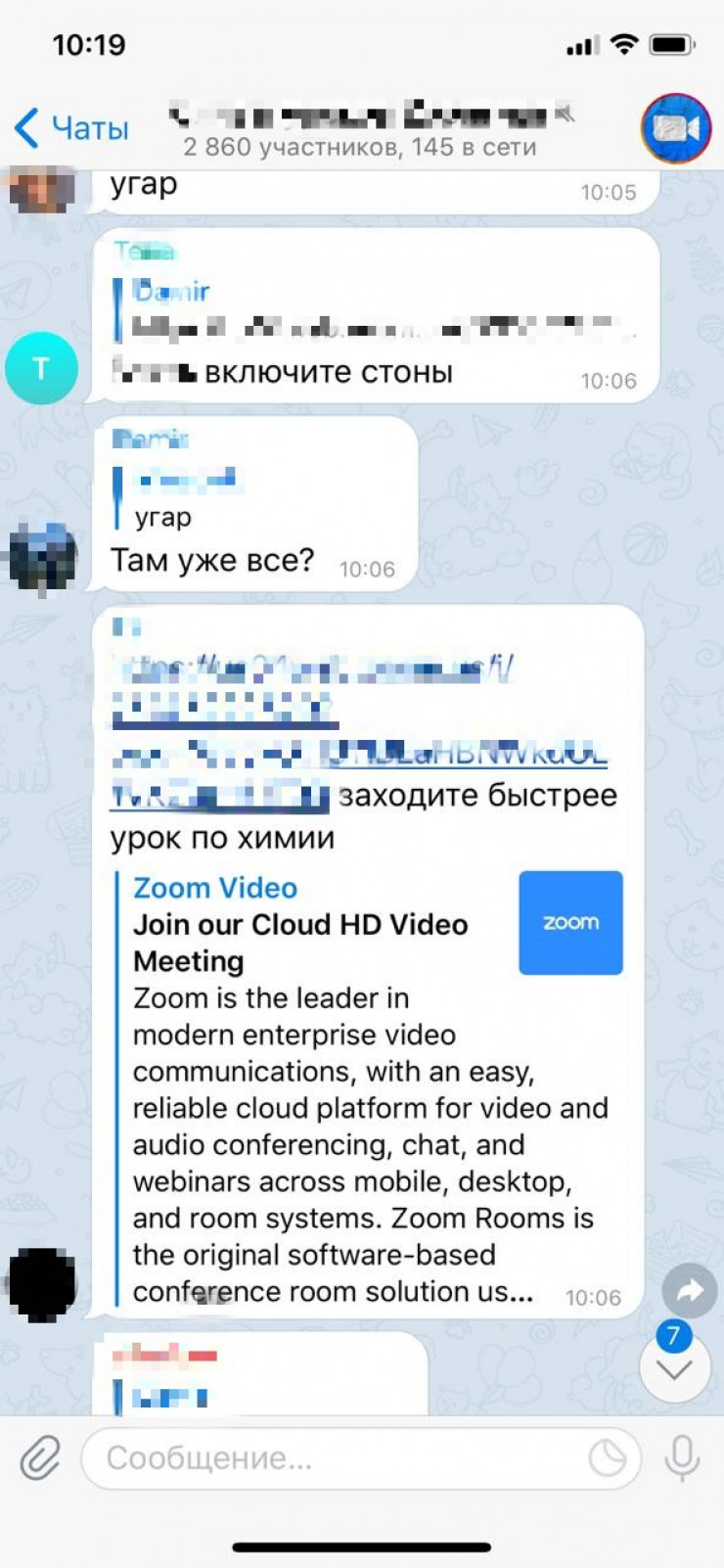 Қазақстандық белсенді Павел Александров балалар арасында Telegram желісінде арнайы канал барын және онда 3 мыңға жуық бала отырғанын айтты. Каналға балалар сабақты "өткізбеу" немесе мұғалімге "кедергі" жасау үшін Zoom-дағы сабақтың сілтемесін, кодын салады. Содан кейін өзгелер кіріп, кедергі жасайды.