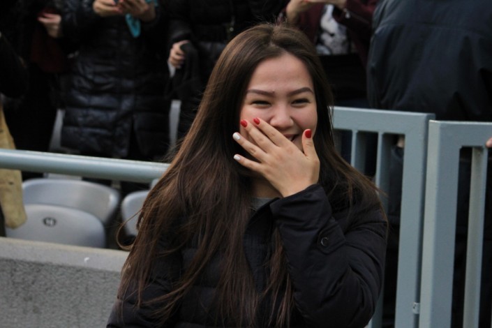 Болельщик сделал предложение девушке на футбольном матче в Астане