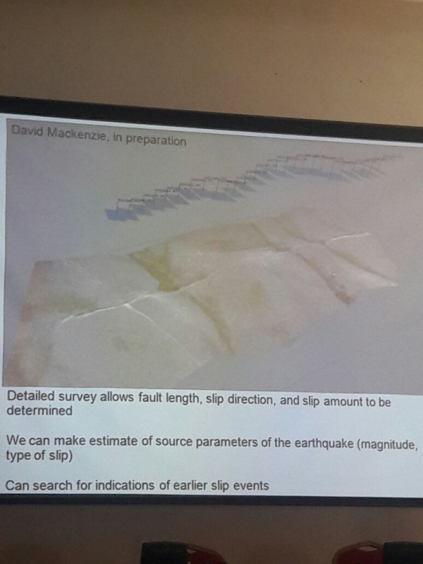 В своем докладе он презентовал результаты работы команды ученых, которая провела исследования разломов - трещин в земной коре, образовавшихся в результате землетрясений в Алматинской области. Уокер пояснил, что разлом - это по сути огромная трещина в камнях.