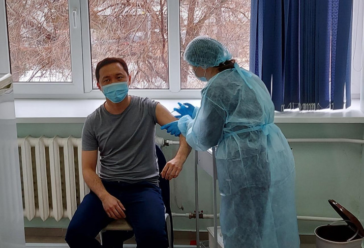 Қарағанды облысының әкімі Жеңіс Қасымбек те вакцина салдырған.