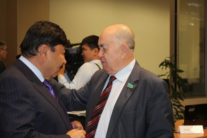 Депутат Мажилиса Парламента (фракция КНПК) Владислав Косарев (справа) со своим бывшим коллегой экс-депутатом, а ныне фермером Темирханом Досмухамбетовым.