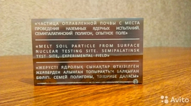Объявление о продаже россиянин разместил на сайте Avito 20 сентября. "Для лучших коллекционеров. Можно в музей. Внутри линзы так называемый харитончик (оплавленная почва)", - говорится в описании. Там же опубликованы фотографии товара.