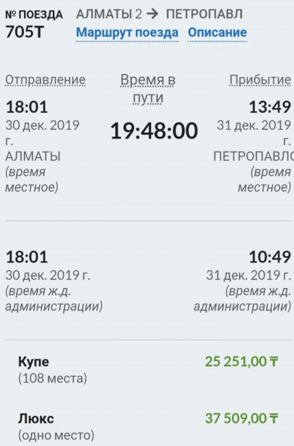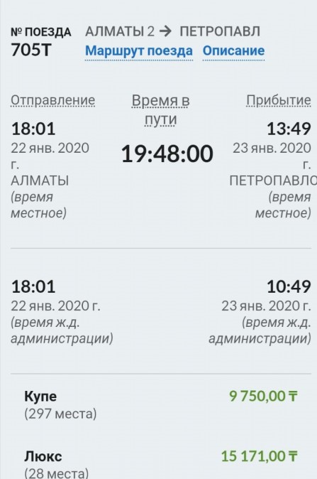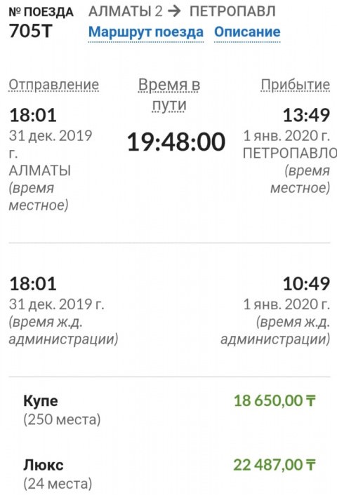 В редакцию портала обратился алматинец Мурат Алиев. Мужчина сравнил цены на билеты на новогодние выходные на сайте "Пассажирских перевозок" Bilet.railways.kz. Он обратил внимание на стоимость билета на поезд номер 705Т сообщением Алматы-2 - Петропавловск. Проездной в купе на 30 декабря стоил 25 251 тенге, на 31 декабря - 18 650 тенге, на 1 января - 16 650 тенге, на 22 января - 9 750 тенге. При этом билет он намеревался купить за месяц до поездки, справедливо надеясь, что сумма должна быть небольшой.