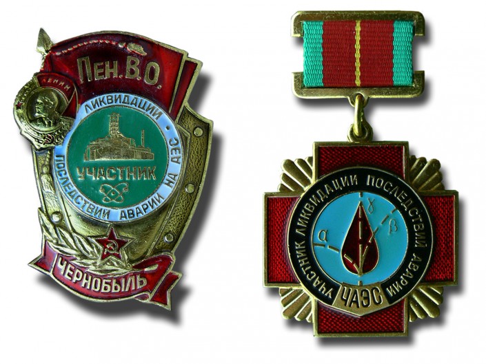 Апат салдарын жоюшыларға берілген медальдар. Альфа, бета және гамма сәулелер адам қанының бойымен өткен көрінісі