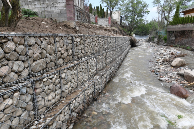 Напомним, вследствие подъема уровня воды во время ливневых дождей на некоторых участках габионные сооружения обвалились.