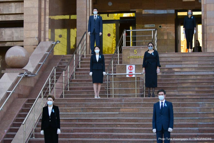Чиновники вышли из Дома министерств во время минуты молчания Фото Tengrinews.kz/Турар Казангапов
