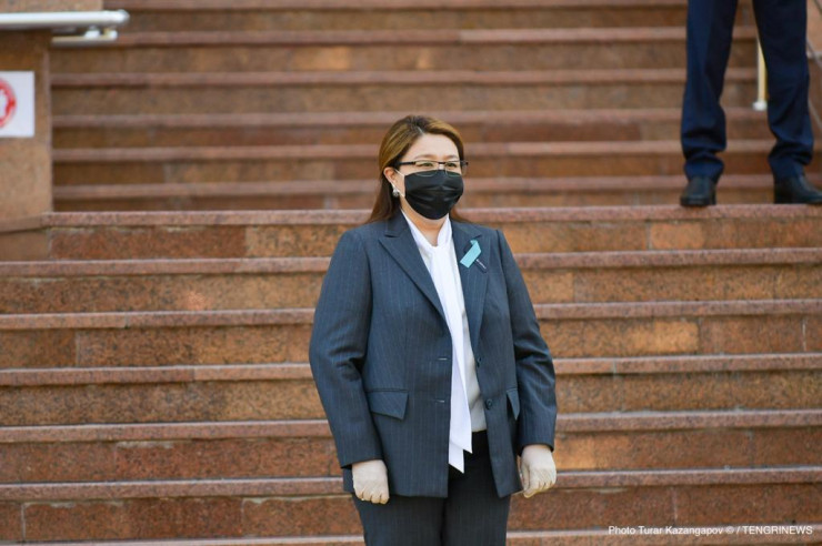 У пятого подъезда выстроились главный санитарный врач Казахстана Айжан Есмагамбетова...