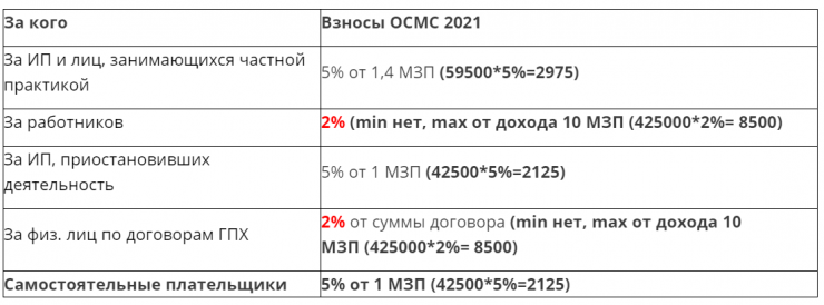 По данным Учёт.kz, с 2021 года ставка взносов на обязательное социальное медицинское страхование станет больше для работодателей, самозанятых и за счет государства. Также с 1 января предусмотрены взносы работников, физических лиц, получающих доходы по договорам гражданско-правового характера, подлежащие уплате в фонд. Если взносы с 1 января 2020 года составляли 1 процент от объекта исчисления взносов, то с 1 января 2021 года - 2 процента.