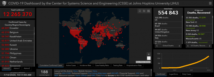 Университет Джонса Хопкинса берет данные с сайта coronavirus2020.kz. Он считается официальным источником информации.