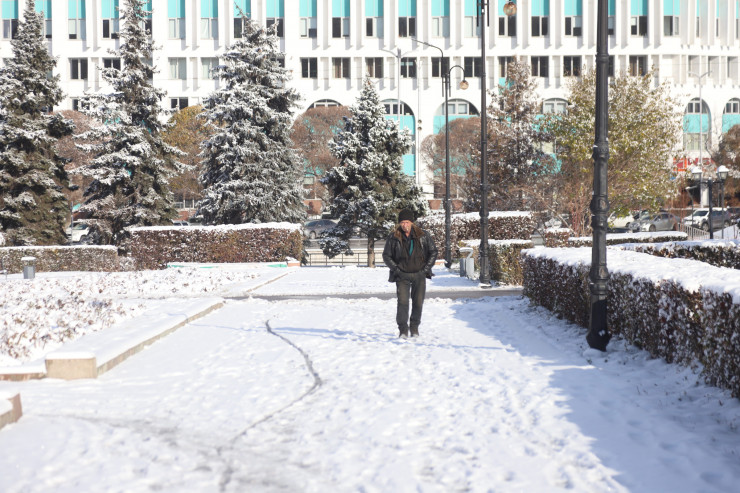 По прогнозу Казгидромета, снегопад завершится сегодня днем. В ночной период температура воздуха опускалась до минус 13 градусов, сегодня днем ожидается до 6 градусов мороза.