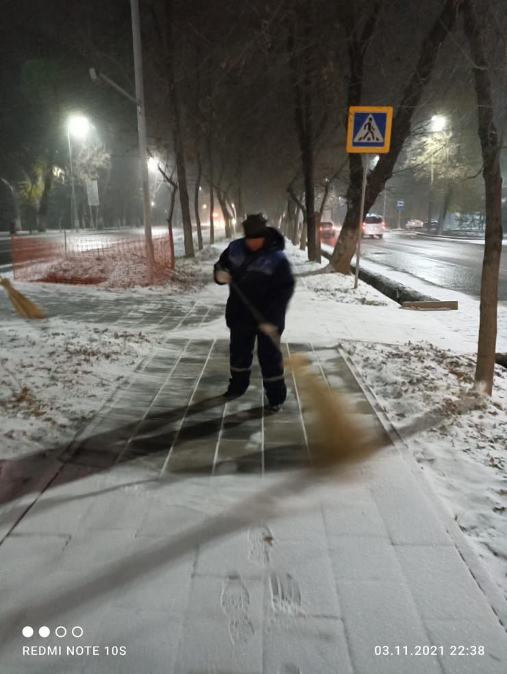 "С начала снегопада силами 185 пескоразбрасывателей производится посыпка дорог противогололедными материалами. Использовано 4200 тонн противогололедных материалов. С 03.30 организованы колонны по сгребанию снега", - добавили в Управлении жилищной политики города Алматы.