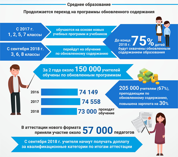 В этом году продолжится постепенный переход на обновленное содержание среднего образования. Если в прошлом году образовательная реформа коснулась учащихся 1, 2, 5 и 7 классов, то в новом учебном году к ним добавили 3, 6 и 8 классы. В 4, 9 и 10 классах началась апробация госстандарта и учебников.