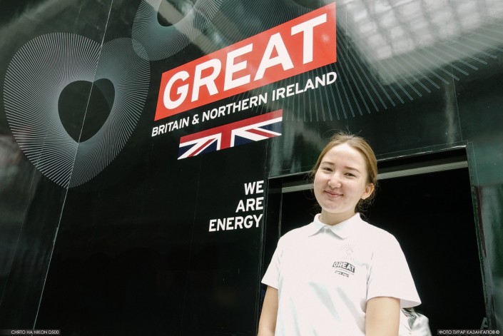 Диана Утежанова также работает в павильоне Великобритании. Студентка приехала из Кокшетау попрактиковать свой английский.