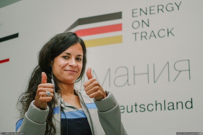Хелена Лаком, главная хостес павильона Германии, приехала в Казахстан из Австрии.