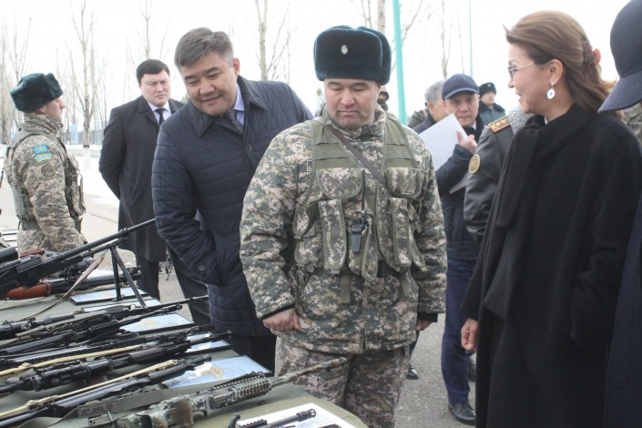 "Как игрушечный", - смеясь сказала Дарига Назарбаева, показывая на одну из штурмовых винтовок в маскировочном окрасе.