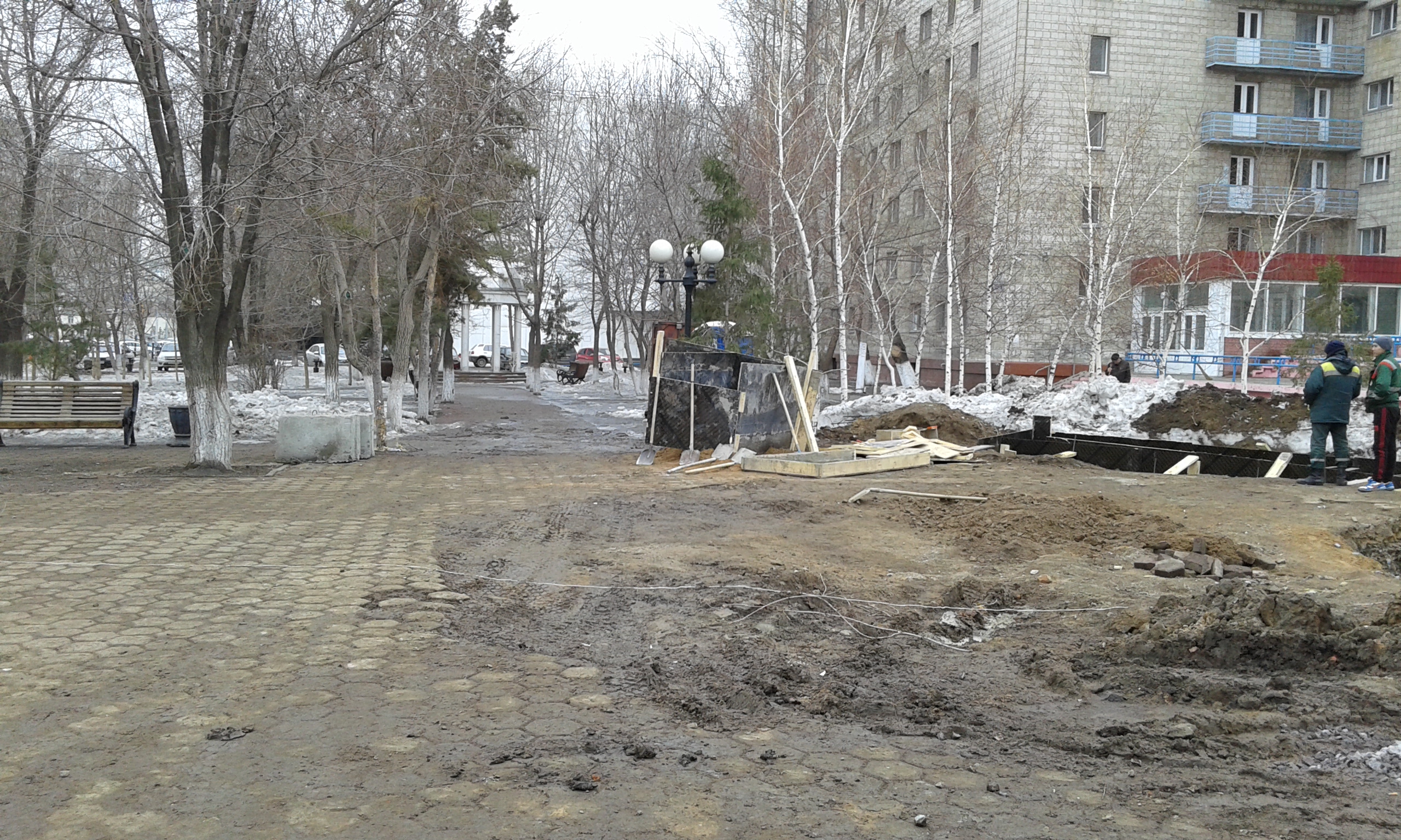 В настоящее время на том месте, где был памятник, ведутся строительные работы. Ответ жительнице Астаны пока не дали. Но ранее на запрос Tengrinews.kz управление занятости и социальных программ акимата столицы сообщало, что к майским праздникам планируется реконструировать сквер на проспекте Победы и памятник двум солдатам.