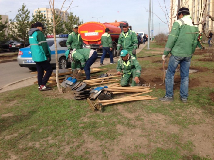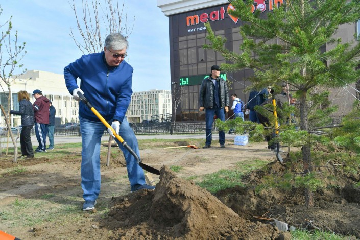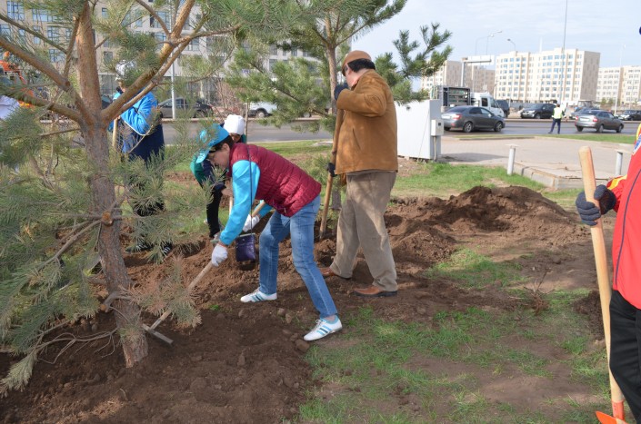 Деревья были привезены из специального астанинского питомника, пояснил аким района "Есиль" Ермаганбет Булекпаев, перечислив органы власти, сотрудники которых решили внести вклад в озеленение города.