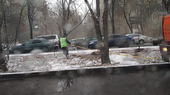 Один из жителей города рассказал корреспонденту портала, что днем 21 ноября стал свидетелем необычной ситуации в районе пересечения улиц Толе би и Яссауи. По словам мужчины, у дороги находилась спецтехника, а на аллее рядом - сотрудник коммунальной службы, который поливал деревья. Очевидец отметил, что в это время на улице шел снег и температура воздуха составляла около 2-4 градусов мороза.