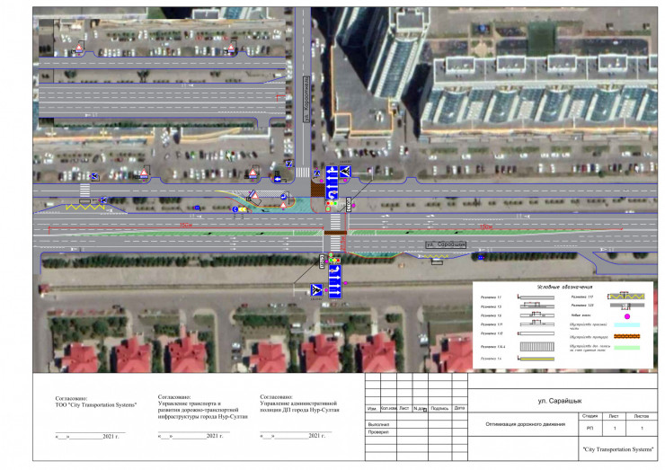 "Планируется установка пешеходных светофорных объектов по улице Сыганак (в районе Jusan Bank). Также планируется обустроить дополнительные полосы движения для заезда на прилегающую территорию и осуществления беспрепятственных разворотов по улице Сарайшык (в районе улицы Караоткель). Установка пешеходных светофорных объектов позволит обеспечить безопасное и комфортное пешеходное движение согласно градостроительным нормам", - говорится в сообщении Управления транспорта и развития дорожно-транспортной инфраструктуры.