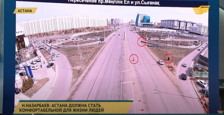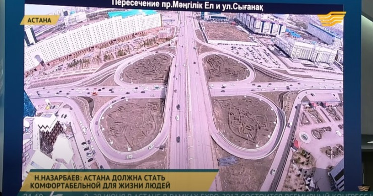 В качестве примера Елбасы тогда привел пересечение улицы Сыганак с проспектом Мангилик Ел.