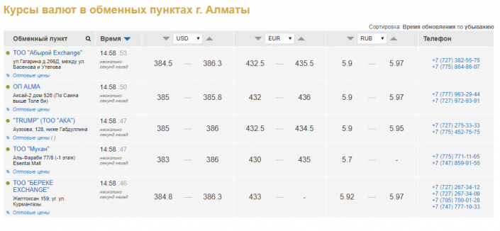 В обменных пунктах Алматы цена доходит до 386,3 тенге.