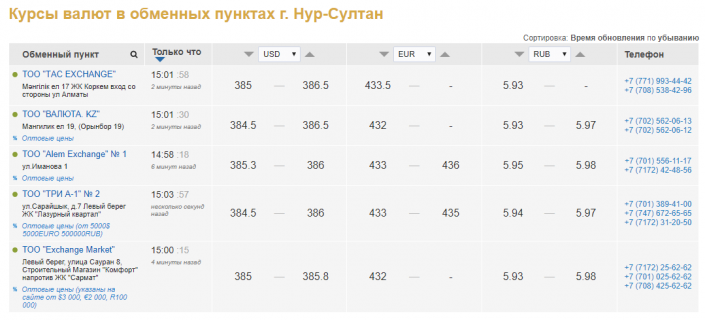 Накануне стоимость доллара достигала 388 тенге. Сейчас продать иностранную валюту можно за 385 тенге.