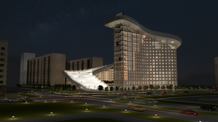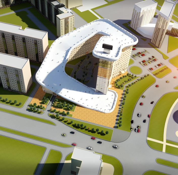"Идея заключается в созданий на основе жилой застройки уникального комплекса с трассой для слалома. При реализации комплекса у него есть несколько достоинств. Это искусственно созданная в городе горнолыжная трасса. Она не имеет аналогов в мировой практике и поэтому может стать одной из достопримечательностей города", - отметили авторы проекта.